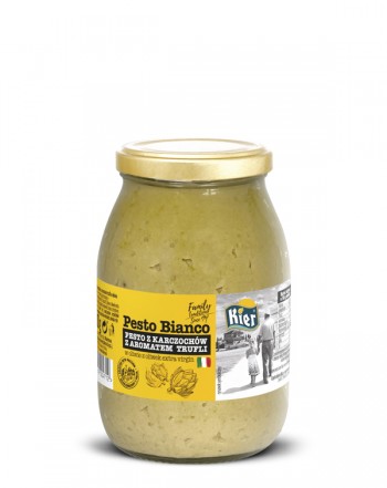 Masa netto: 900 gSkładniki: Świeża bazylia Genovese DOP 43%, olej słonecznikowy, orzechy nerkowca, kruszony ser i ser Parmegiano, czosnek, oliwa extra virgin, skrobia kukurydziana, błonnik pszenny, sól, regulator kwasowości: GDL.Ilość sztuk w kartonie: 6