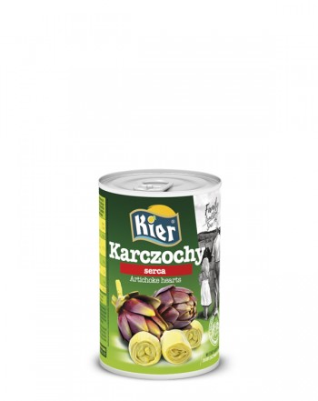 Masa netto: 390 gMasa po odcieku: 240 gSkładniki: Karczochy, woda, sól, regulator kwasowości - kwas cytrynowy, przeciwutleniacz - kwas askorbinowy.Ilość sztuk w kartonie: 24